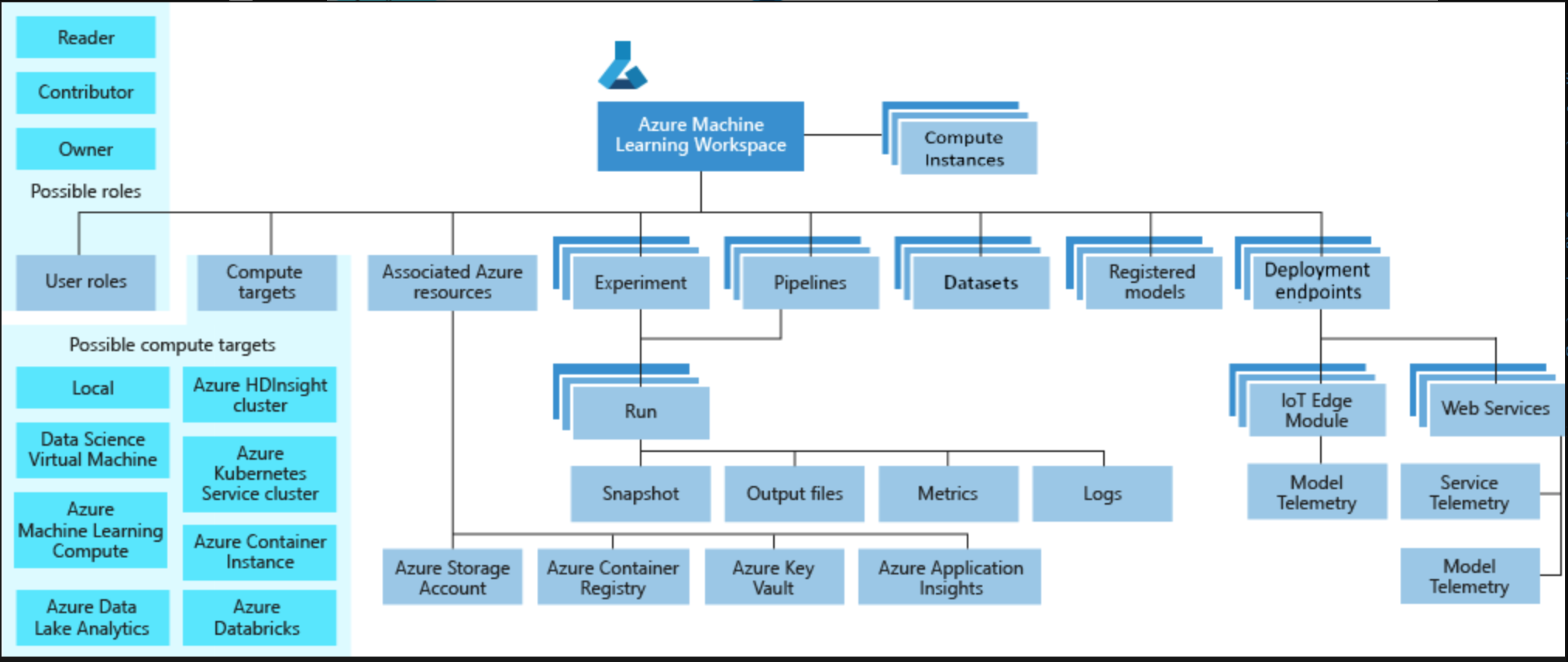 An AML workspace integrates a lot of different machine learning functionality (image from Microsoft)